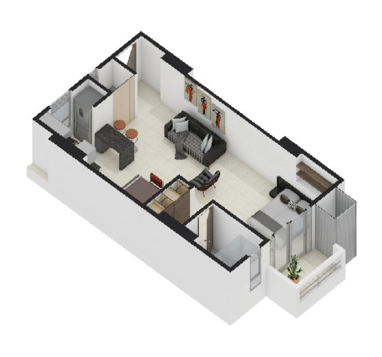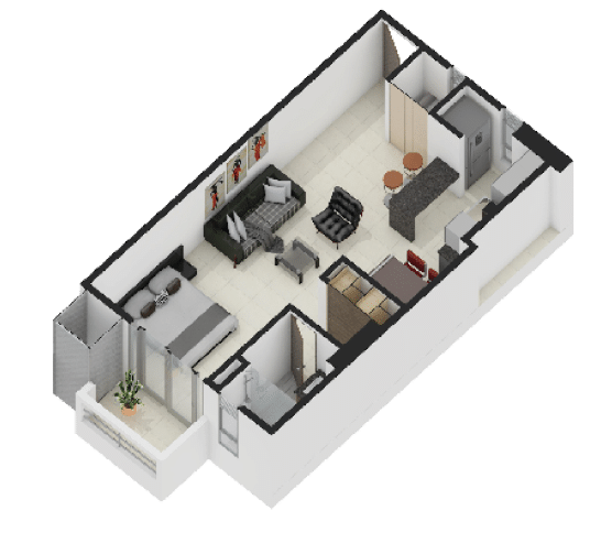 El Business Studio ($42.20 m²): Es el gigante de la Serie Gold. Pensado para el ejecutivo de alto nivel que necesita espacio de sobra para su día a día sin perder la practicidad.