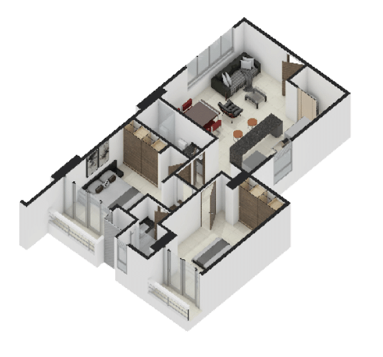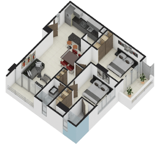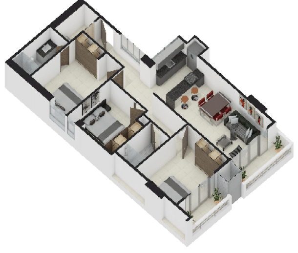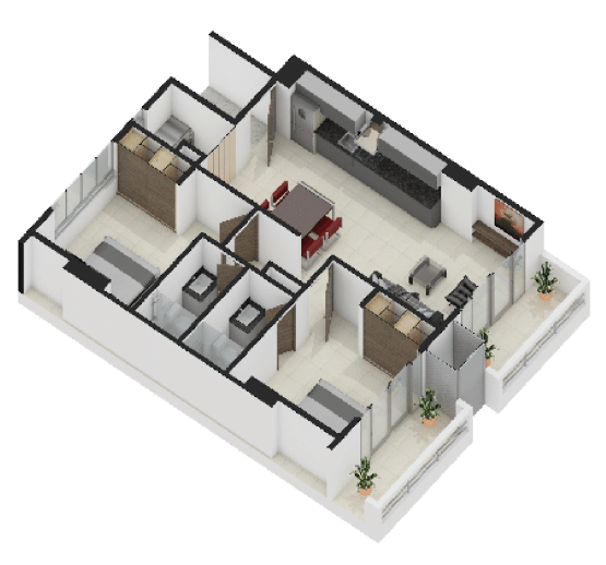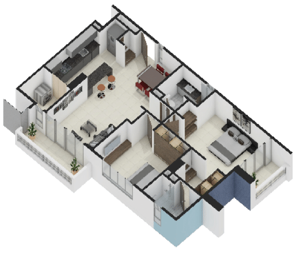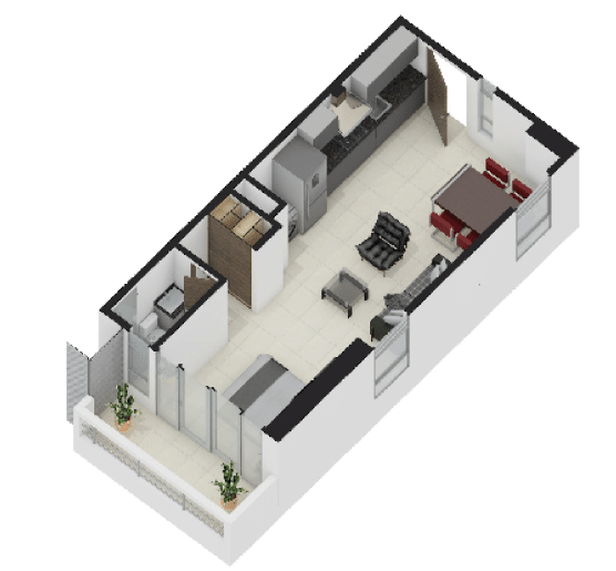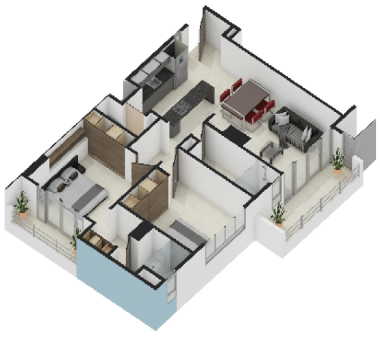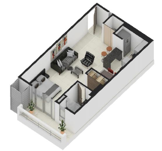 La Elección Versátil ($63.50 m²): Distribución inteligente de 2 habitaciones y 2 baños. Cada metro cuadrado está optimizado para la vida en familia.