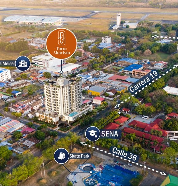 Vive en la intersección del lujo, la comodidad y la modernidad de la Calle 36 con Carrera 19. Desde ascensores panorámicos y energía solar hasta una terraza mirador con piscina y locales comerciales a tus pies. Torre Altavista no es solo un edificio, es el ecosistema urbano que mereces.